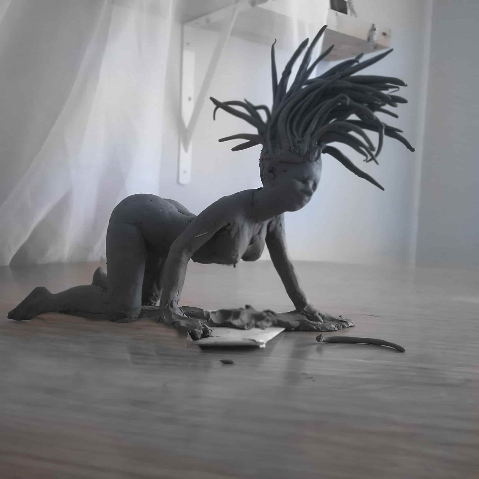 Como elegí de la postura en éste modelado de cuerpo de mujer en barro para su posteriorfundición en bronce